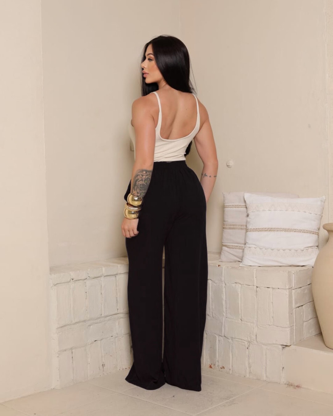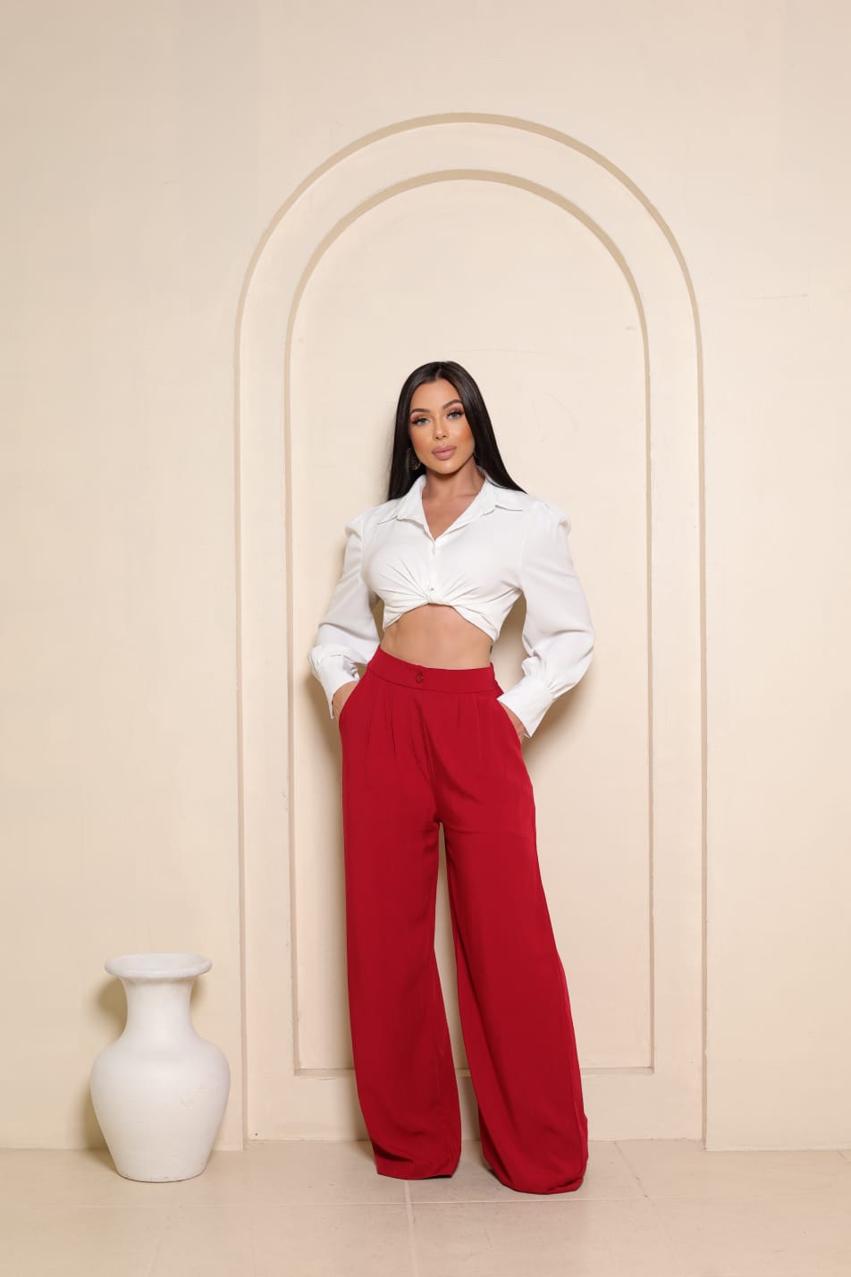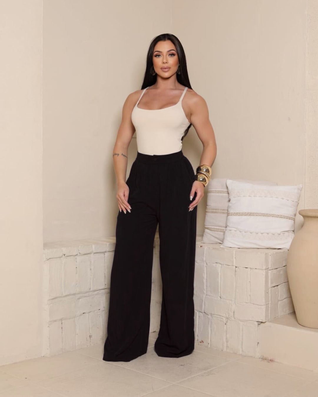 A calça Pantalona Bella Forrada tem tecido viscolinho premium, com forro interno que garante conforto e zero transparência. Possui elástico na parte de trás do cós, proporcionando melhor ajuste ao corpo, botão frontal da mesma cor da peça para um toque elegante e bolsos faca funcionais que unem estilo e praticidade. Disponível nos tamanhos P, M e G, é uma escolha versátil para compor looks casuais, de trabalho ou ocasiões especiais.