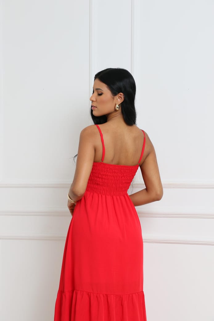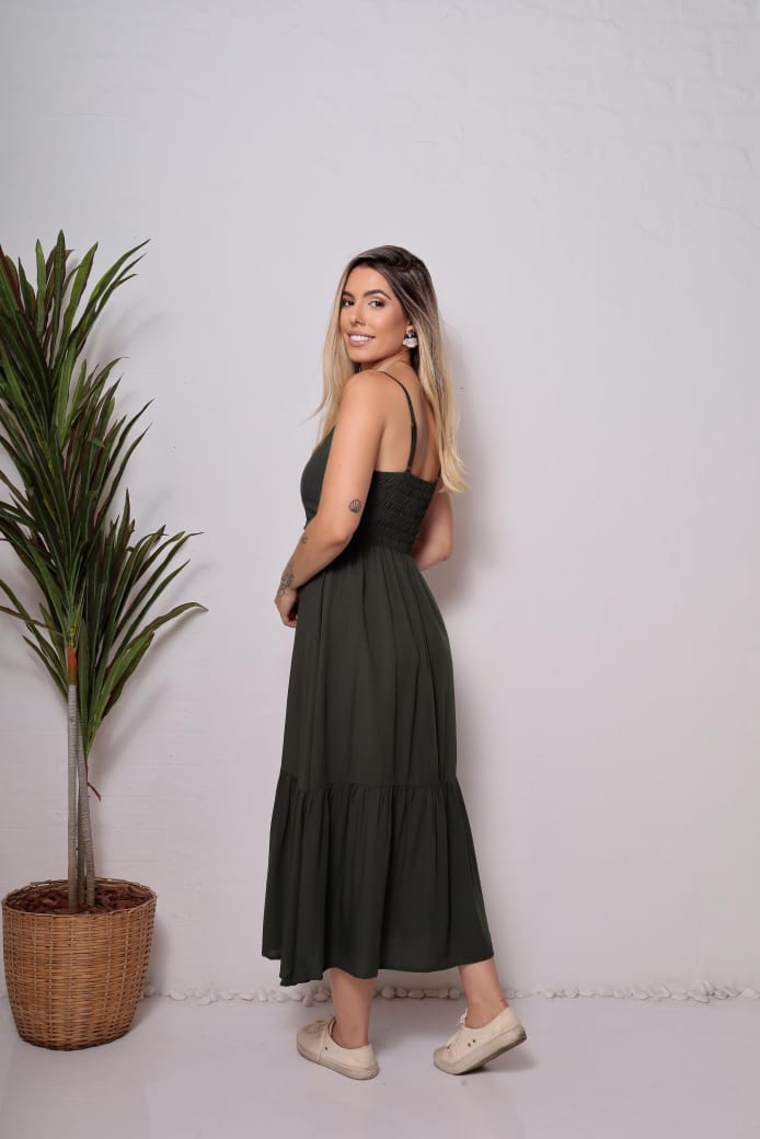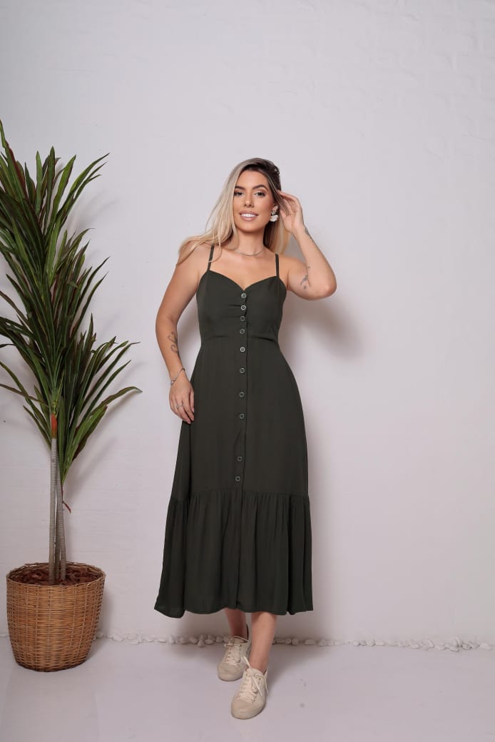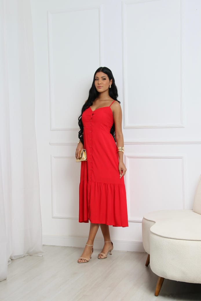 Vestido Midi em Viscolinho Premium, com botões frontais funcionais, forro interno e alças reguláveis que garantem ajuste perfeito e conforto. Modelagem fluida que valoriza o corpo com elegância e leveza. Disponível nos tamanhos M, G e GG.